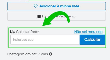Após incluir o cep, clique em calcular, logo abaixo será possível verificar qual será o seu prazo de entrega A contagem do prazo se inicia sempre após a aprovação do pagamento do seu pedido.
