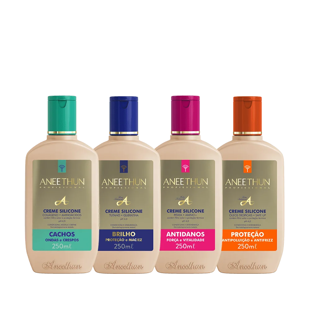 1 Creme Silicone Antidanos 250mL: Com Pitaya e Amino+, o Creme Silicone Antidanos é um forte aliado contra os danos causados à fibra capilar. Oferece tratamento profundo, age no interior da fibra e restaura de dentro para fora, deixando os fios mais fortes, saudáveis, macios e brilhantes.