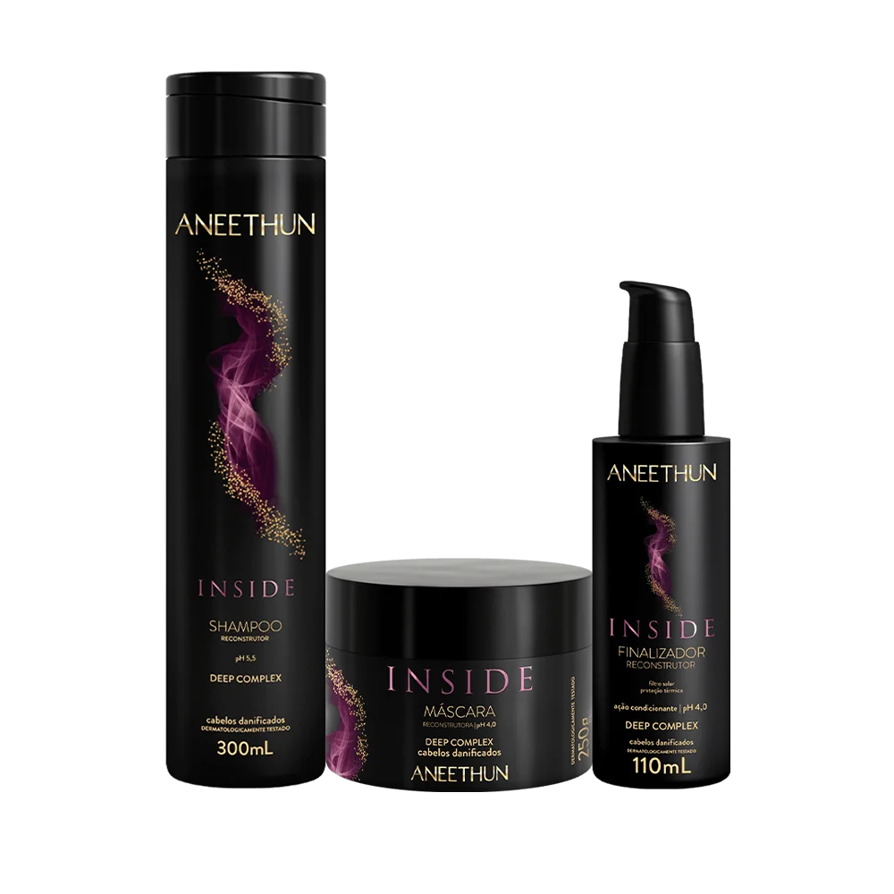 Inside é uma linha de reconstrução Premium que atua nas camadas mais profundas da fibra capilar, desde o córtex até as cutículas, promovendo reparação, força e resistência. Desenvolvida com alto teor de proteína de reconstrução, Inside combate a porosidade, restaura as cutículas e supre as necessidades dos fios severamente danificados.